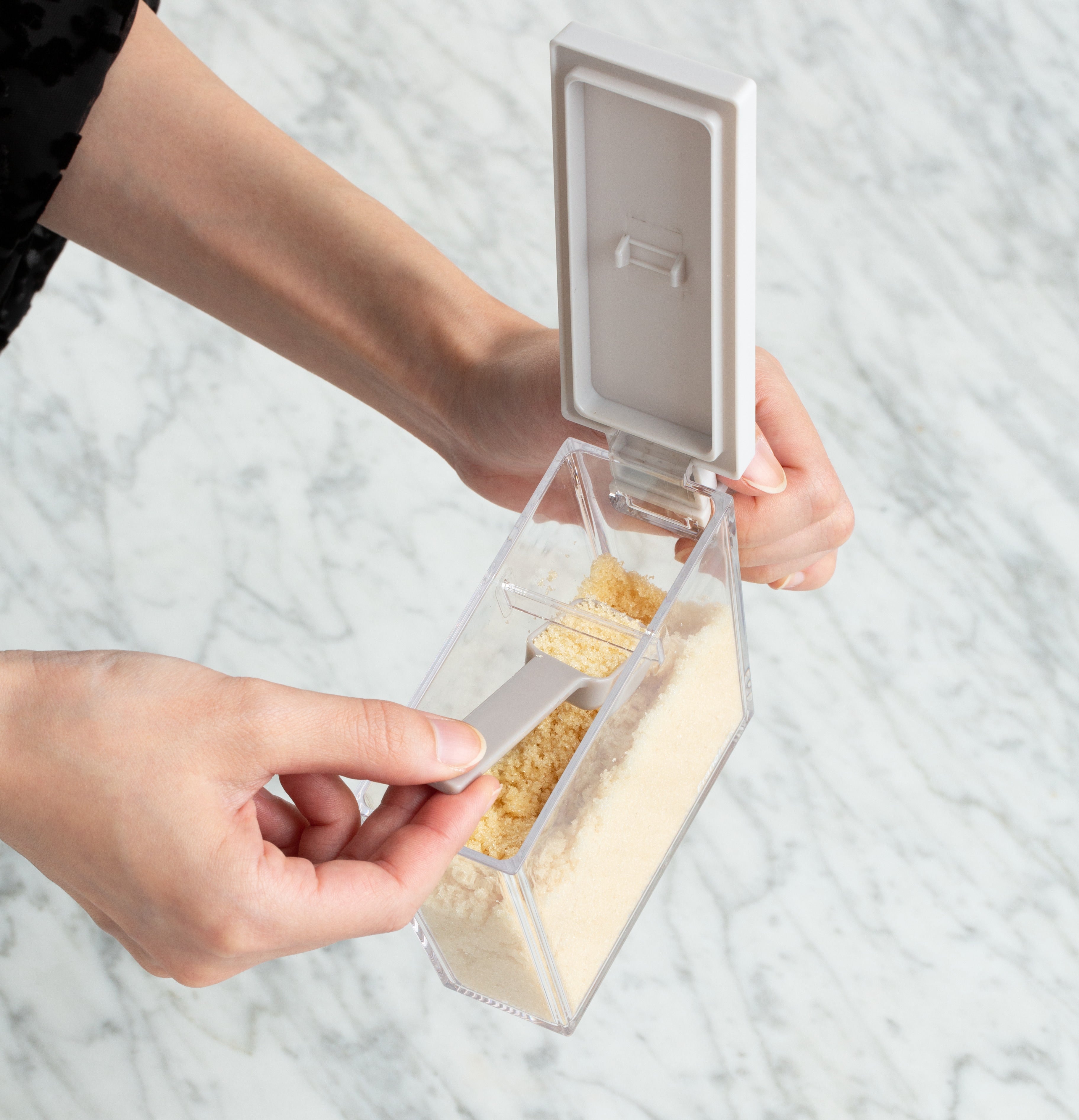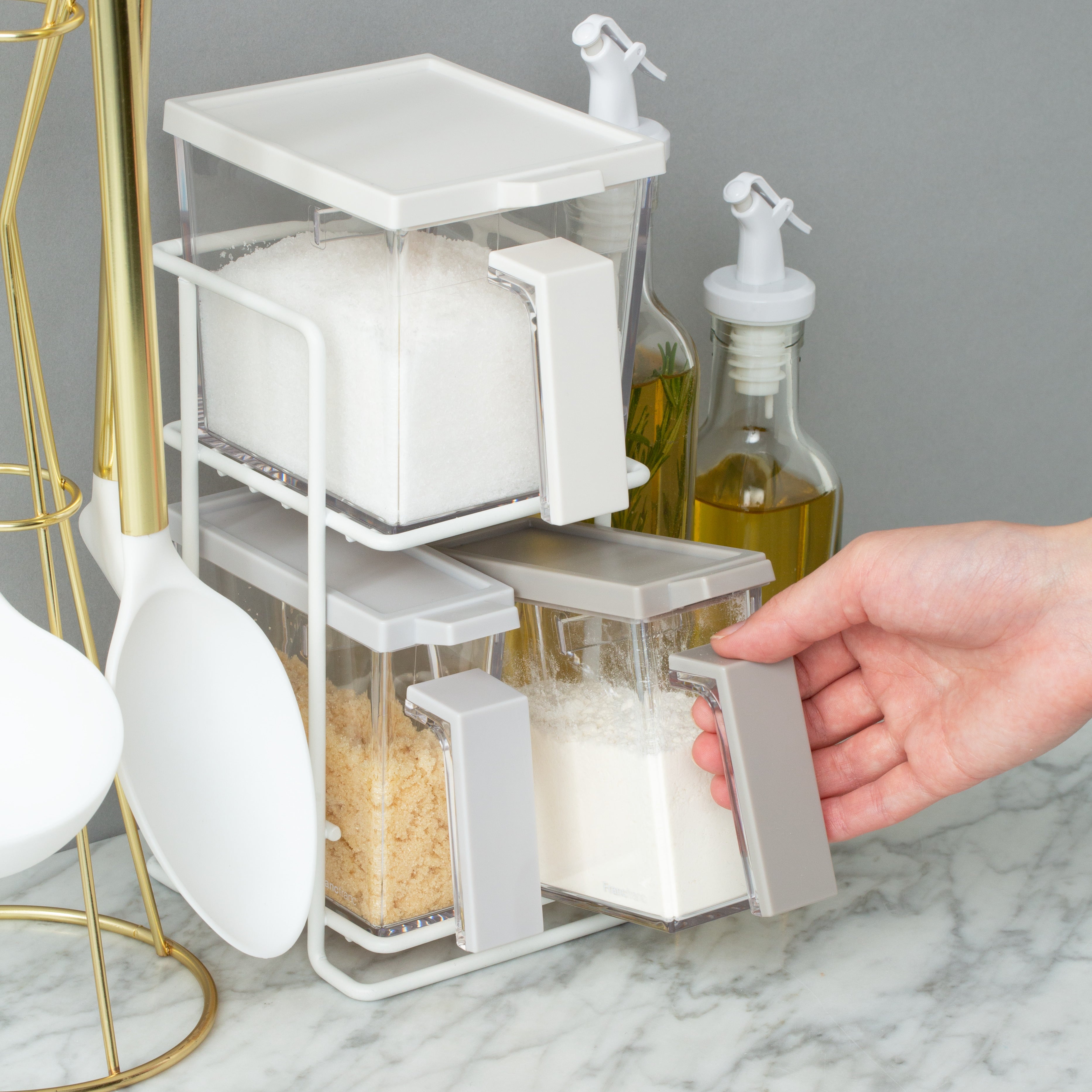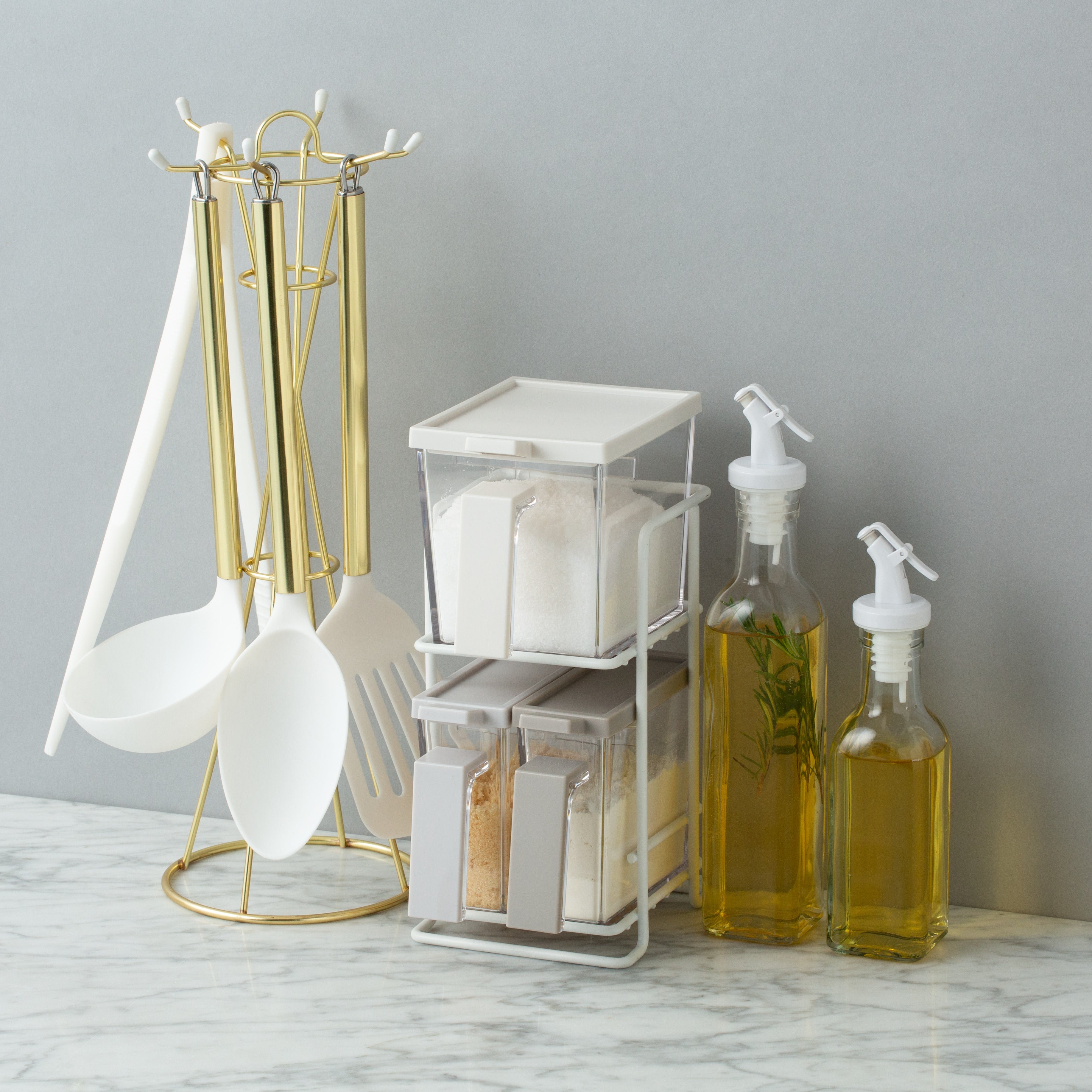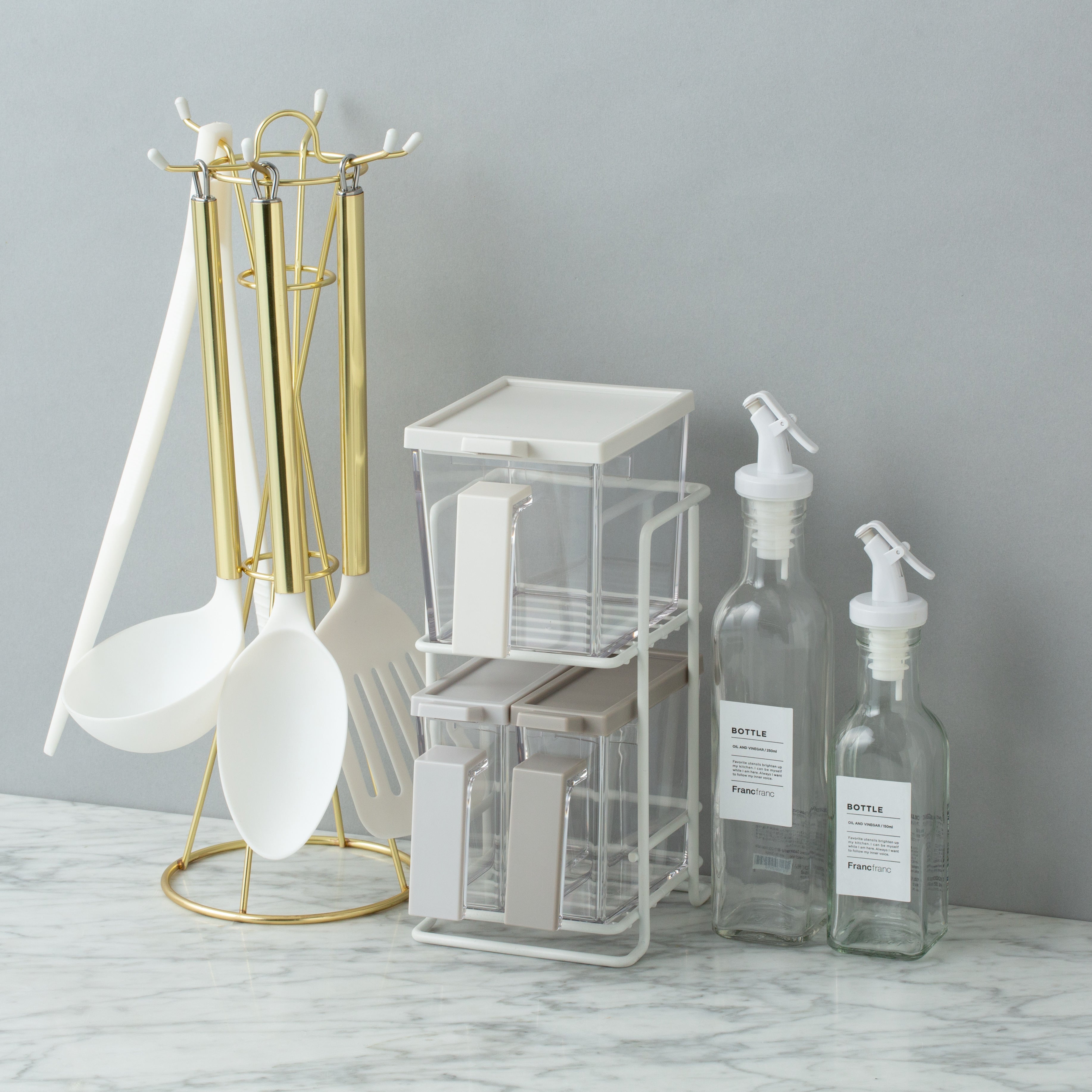 It is a kitchen tool that gives a simple yet gorgeous impression, with all three different gradation-like color combinations so that the seasonings can be distinguished by the color of the container.
