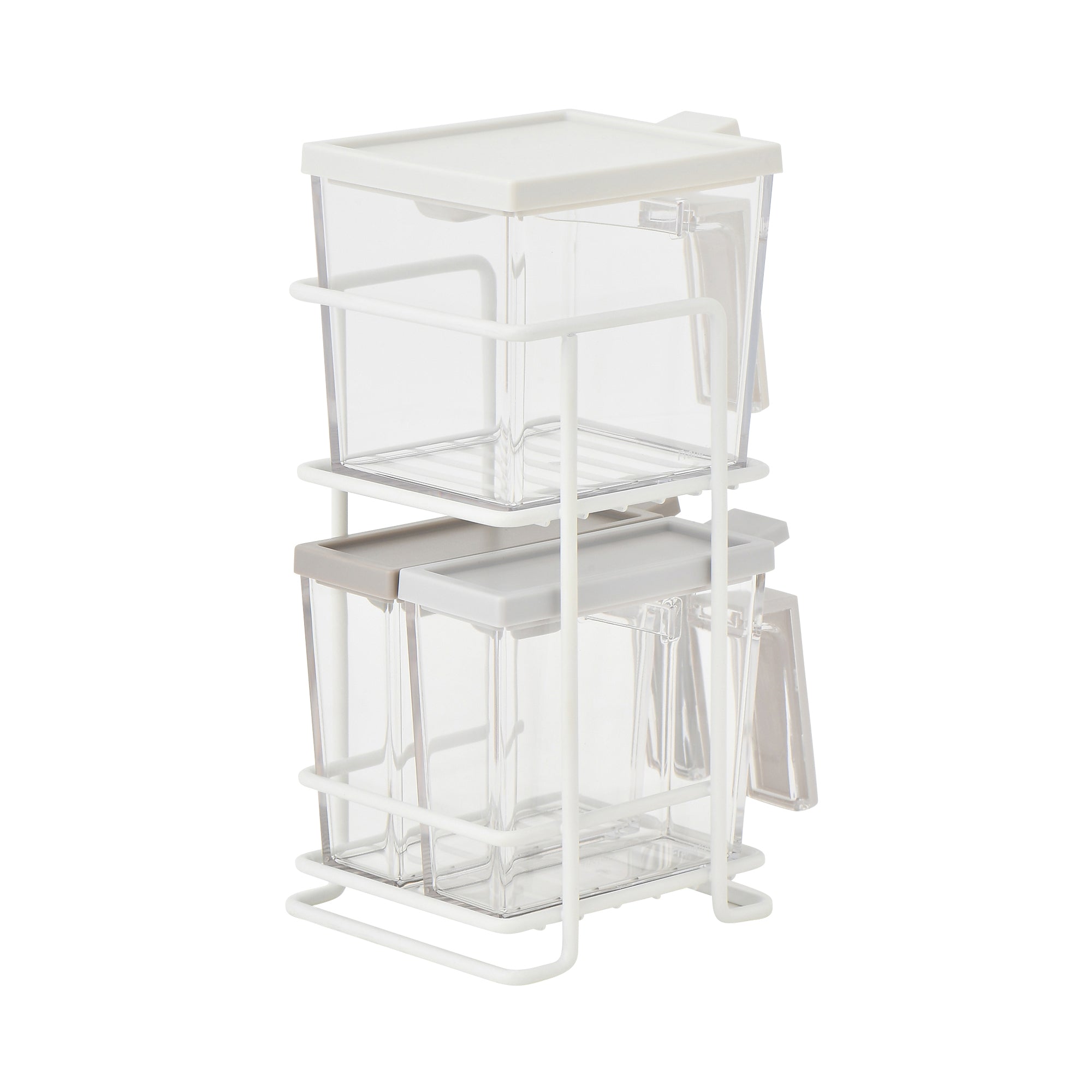 Material: Kitchen rack steel, container body: AS / lid: ABS / spoon PP / packing: silicone rubber