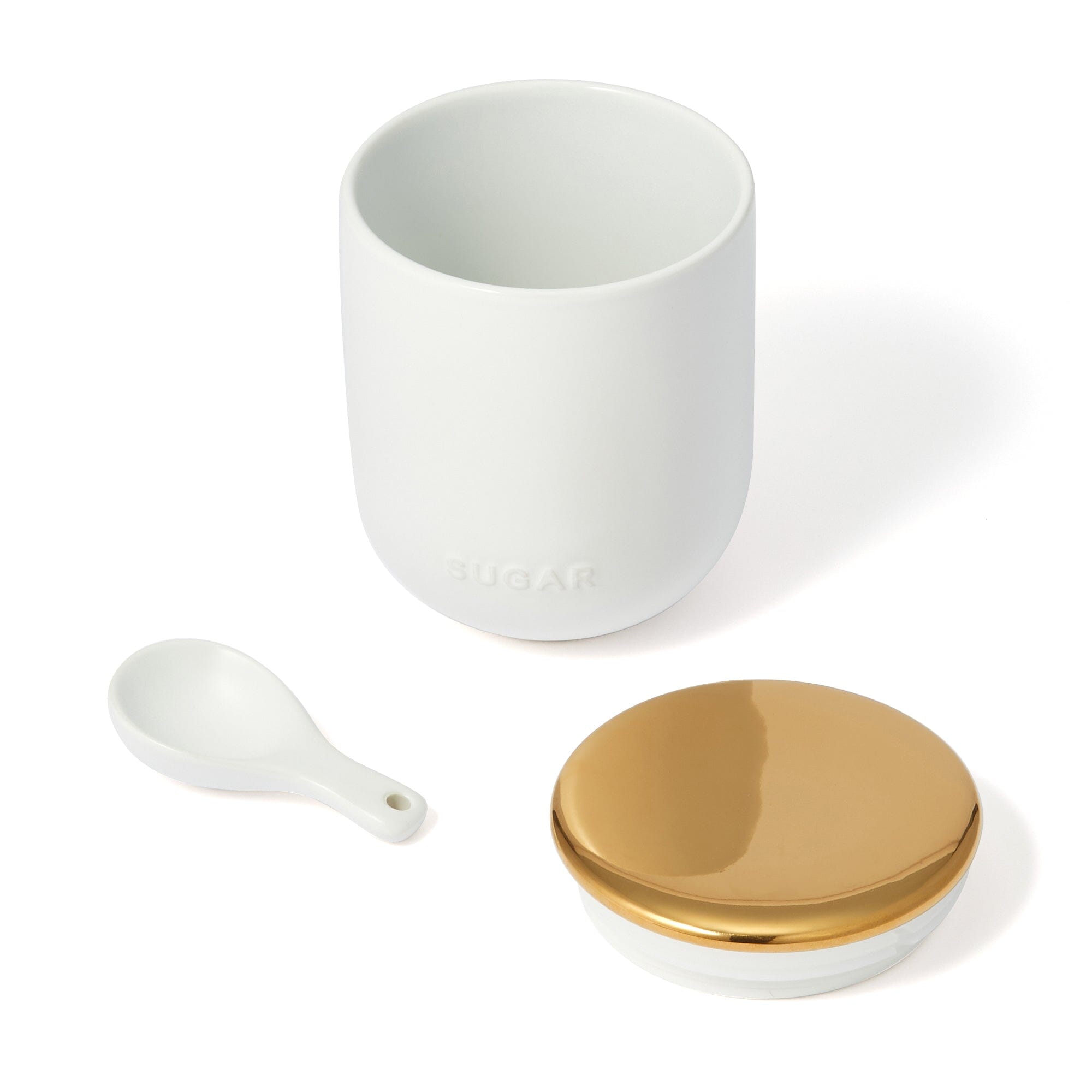 A canister with a simple design and a contrasting copper-colored lid.Comes with a cute pottery teaspoon for your convenience.